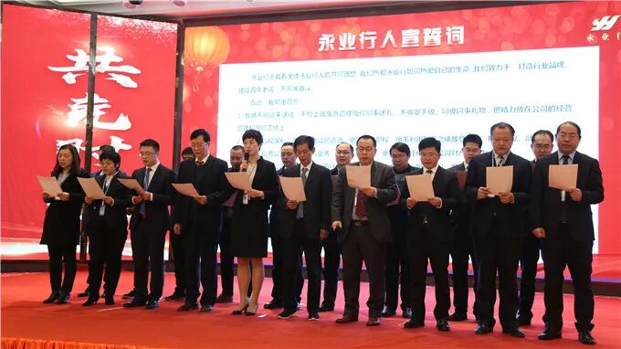 会上,全体与会人员集体宣读了永业行核心价值观,并进行了工作作风宣誓。誓词铿锵有力、掷地有声,昭示着全体永业行人敢于担当、勇于创新、廉洁从业的坚定信心与决心。