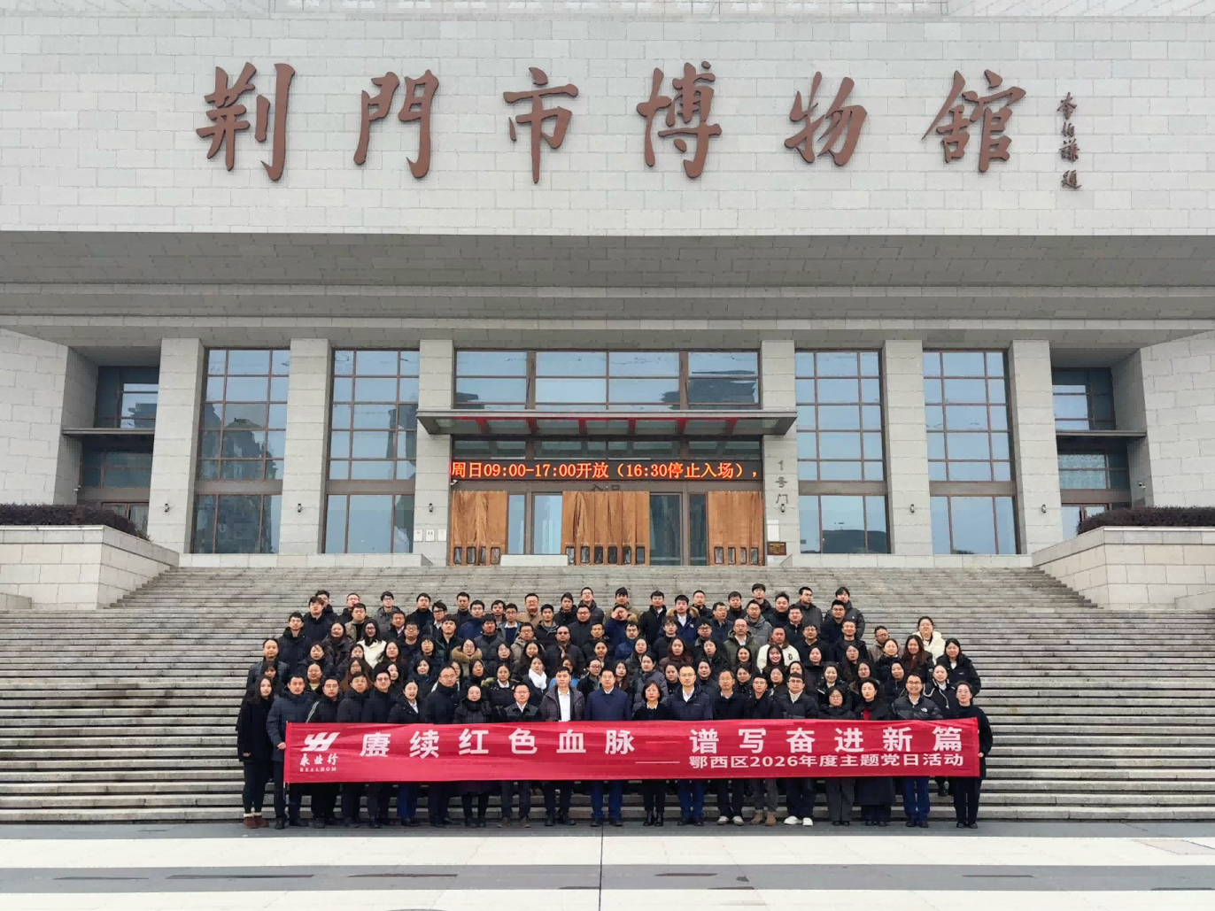 2026年1月30日,永业行鄂西党支部组织全体党员与管理团队赴荆门市陈士榘将军故居和荆门市博物馆开展“赓续红色血脉,谱写奋进新篇”主题党日活动。永业行党委委员、鄂西党支部书记、副总裁兼鄂西区总经理雷小明参加活动,并邀孝感分部总经理梁小虎及管理团队参加。