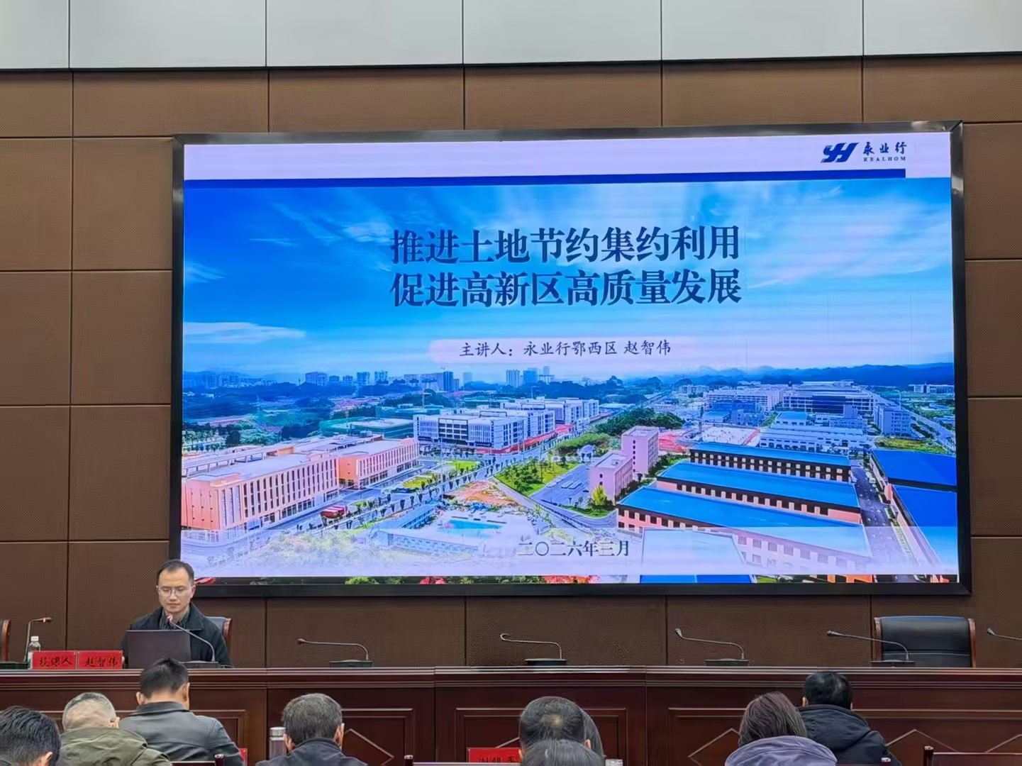 2026年3月25日,恩施高新技术产业园区管理委员会组织“干部经济工作能力专题学习”专题学习。州委恩施高新区工委委员、纪检监察工委书记谢锡平主持会议。永业行鄂西区副总经理赵智伟受邀作“土地节约集约利用”专题培训。